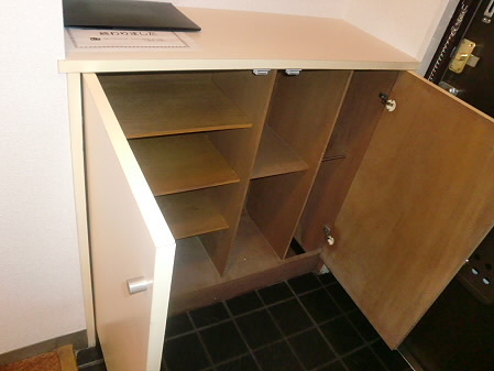 縦にも横にも大きな靴入れもあるので、靴の多い方も安心ですよ。