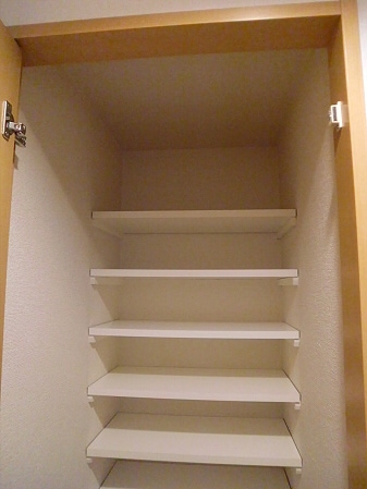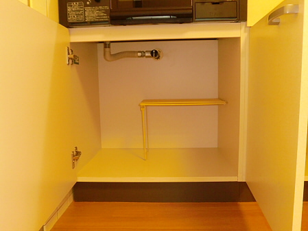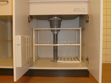 上部分に棚が付いてますので、お掃除用品などを置いておくことが出来ます。
