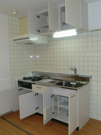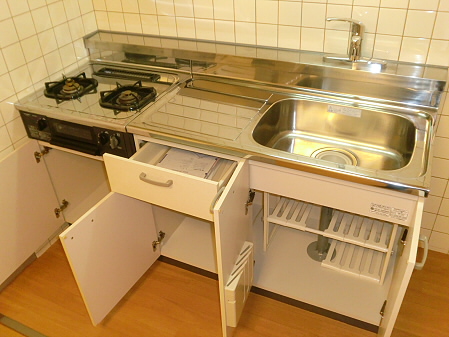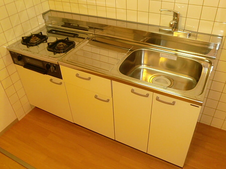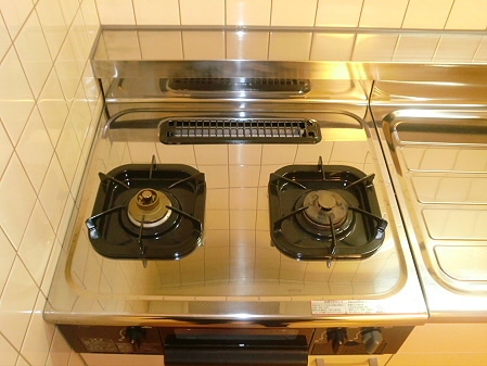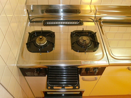 キッチンは2口ガスコンロが設置できるタイプなので、