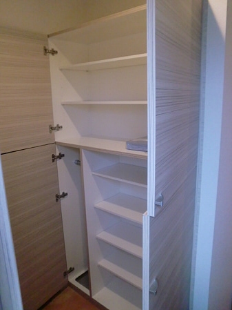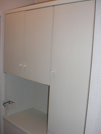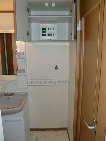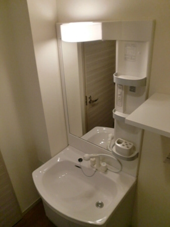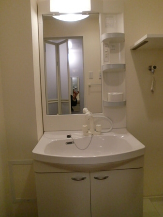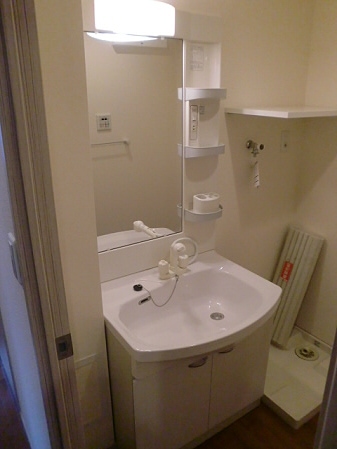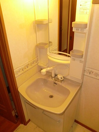 脱衣所には独立洗面台がありますので、洗顔や朝シャンが楽だと思いま せん? 鏡もあり髪を整えるのも便利ですし忙しい朝の時間も化粧が出来ますね。もちろん収納もあるので洗剤やトイレットペーパなどのストックはこちらでどうぞ。