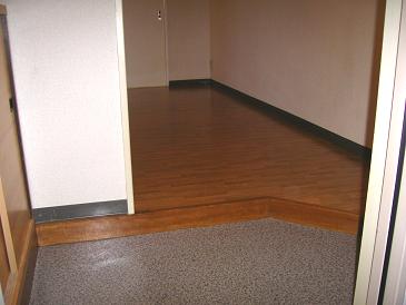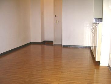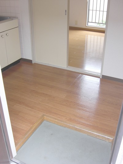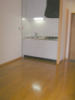 (ドアを開けると綺麗なフローリングのキッチンがあります。)