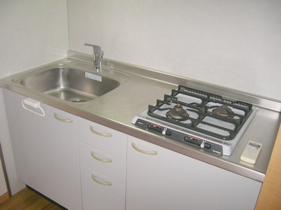 (キッチンは大型の2口システムキッチンでお料理するのもラクラクです。)