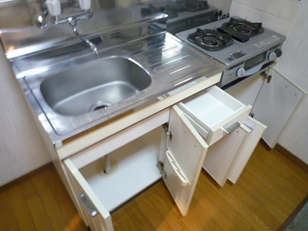 シンク下の収納はたっぷりですので、鍋も食器類も
