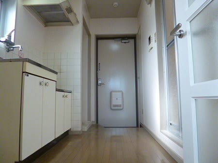 キッチンの横が冷蔵庫&洗濯機置場となっています