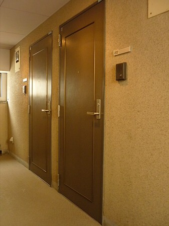 お洒落な廊下に頑丈な扉です