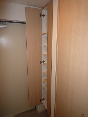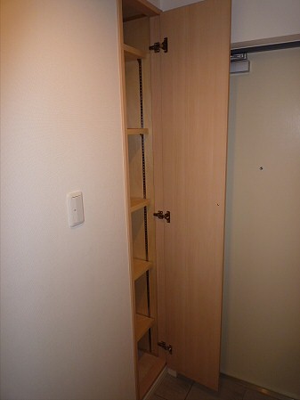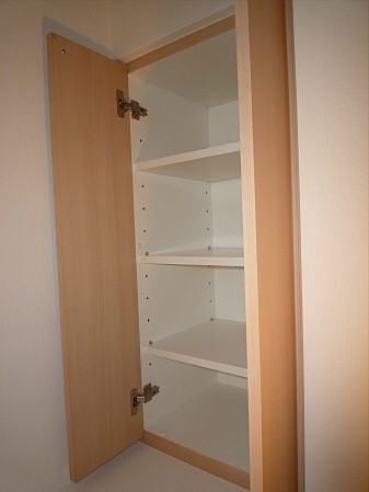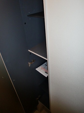 扉付き収納ですので、トイレットペーパーや掃除用具を露出しなくてすみますね