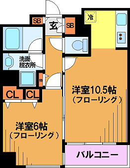 間取詳細 リビングダイニングキッチン 10.5帖、洋室 6帖