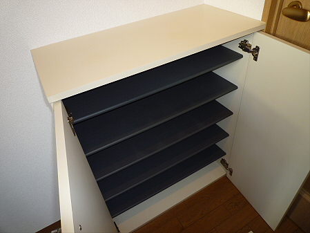 左右に収納があります。靴以外にも本棚としてもお使いいただけます。好みで何でも入れられます。