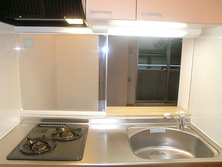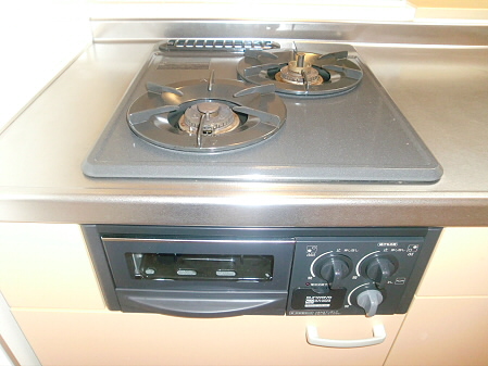 ガスコンロ2口のシステムキッチンです